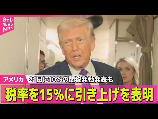【転載元】【アメリカ】新たな関税 10%から15%に引き上げ トランプ大統領が表明 / イランへの限定的攻撃「検討している」 ── 国際ニュースライブ(日テレNEWS LIVE)