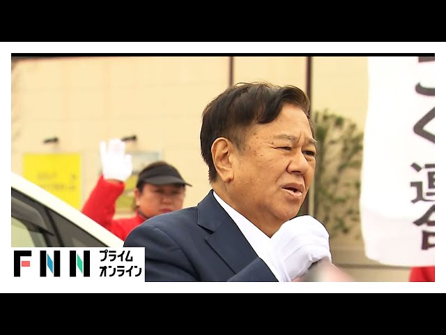 減税日本・ゆうこく連合の原口共同代表は1月27日、佐賀市内で衆院選の公示後第一声となる街頭演説に臨んだ。