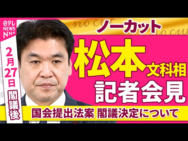 【転載元】【会見ノーカット】閣議後 松本文科相 記者会見「国会提出法案 閣議決定について」 ──政治ニュース(日テレNEWS)