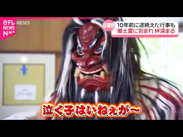 秋田県男鹿市の加茂青砂地区で10月上旬に開かれた「収穫祭」の特集です。小学校だった建物で開かれた催しでは、卒業生による太鼓のショーや、住民が歌詞を練り上げた歌などが披露されました。一番の盛り上がりをみせたのは10年前に地区で歴史が途絶えていたナマハゲの登場でした。