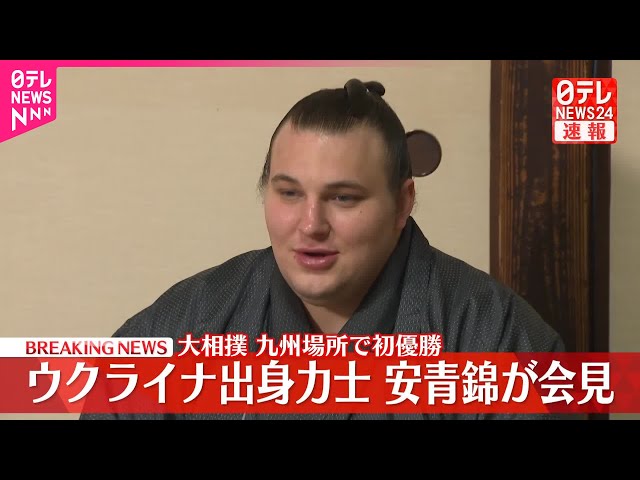 大相撲九州場所で初優勝したウクライナ出身力士の安青錦が会見しました。