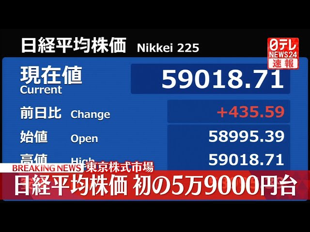 26日朝の東京株式市場で日経平均株価は取引開始直後から値を上げ初めて5万9000円台をつけました。